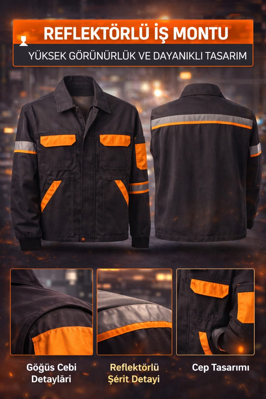 Kot kumaş yapısı ile dayanıklılığı ve konforu bir arada sunan bu iş montu, zorlu çalışma koşulları için tasarlanmıştır. Göğüs kısmındaki reflektör şeritleri sayesinde ekstra görünürlük sağlar. Sağlam dikiş yapısı ve fonksiyonel cepleri ile hem saha hem de günlük kullanım için ideal bir iş montudur.