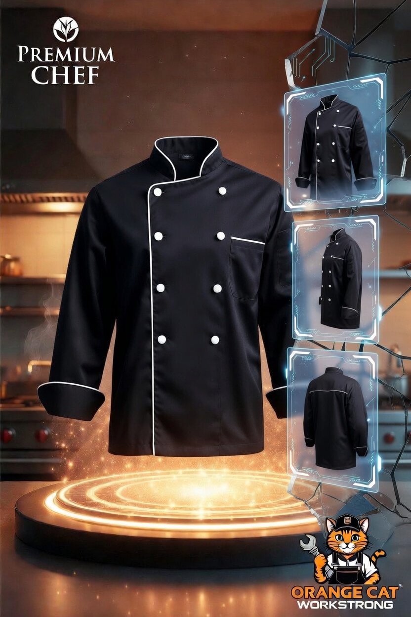 Profesyonel mutfak çalışanları için tasarlanmış dayanıklı şef ceketi.